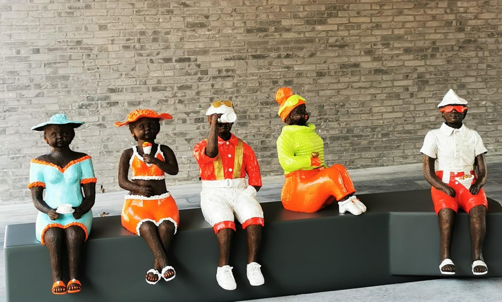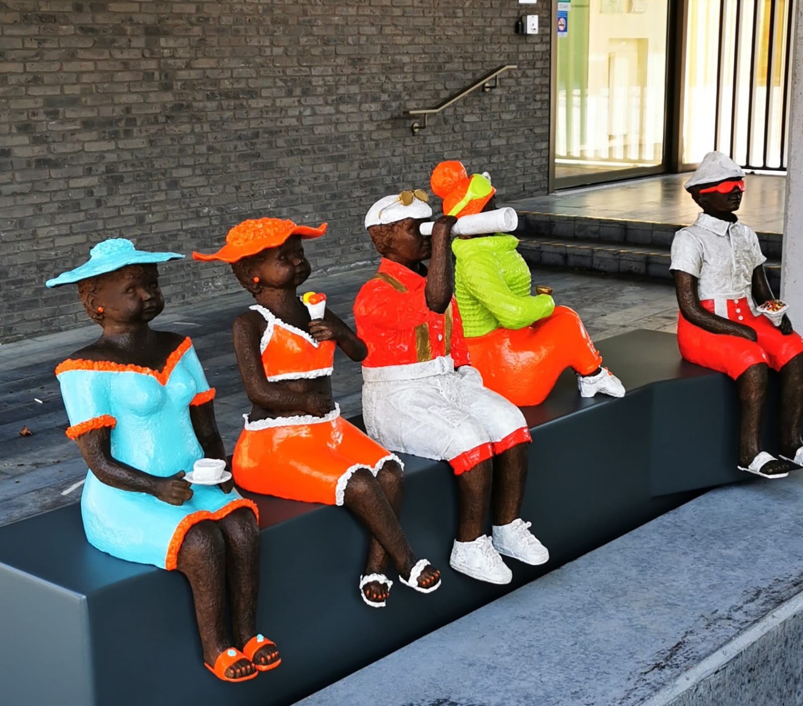 Het kunstwerk “VIER SEIZOENEN!” is een vrolijk en kleurrijk werk bestaande uit vijf afzonderlijke bronzen figuren (60-63cm hoogte), samen een unieke samenstelling. Vier beelden vertegenwoordigen telkens een seizoen: lente, zomer, herfst en winter. Het vijfde beeld is een figuur met bloemenruiker.
